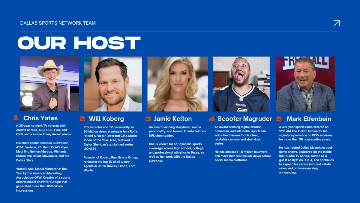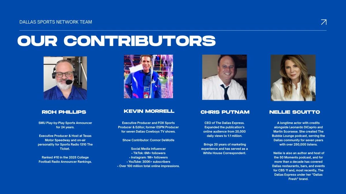 Dallas Sports Network (DSN) delivers a powerful three-show sports lineup built to dominate year-round coverage across the DFW market—connecting fans to the teams, storylines, and personalities they care about most.